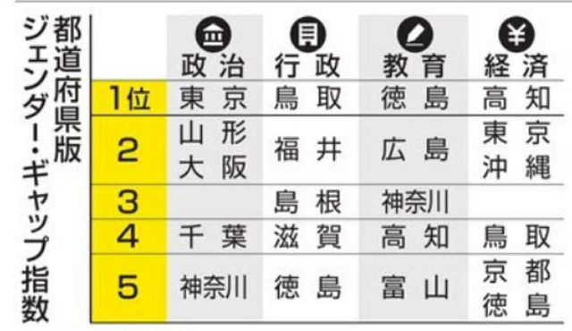 毎年のことですが、 上智大三浦まり教授らでつくる「地域からジェンダー平等研究会」か゜、この日に合わせ、各地域の男女平等度を政治、行政、教育、経済の4分野で分析した2026年の「都道府県版ジェンダー・ギャップ指数」を高知新聞でも公表されています。