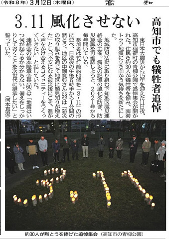 3月11日は例年のこととはいえ、議会が終わって、下知地区減災連絡会で開催する15年目の3.11「東日本大震災追悼の集い」や「オンラインで繋ぐ被災地の復興」の準備やら開催、片付けと慌ただしく過ごしました。