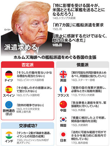 トランプ米大統領は17日、「ほとんどのNATOの『同盟国』から、イランに対する我々の軍事作戦に関わりたくないと伝えられた」とSNSで激しいいら立ちを示し、「我々はもう、NATO諸国の助けを必要としていない。助けなど欲しくもない。日本や豪州、韓国からもだ」と強がっていたことが、報じられています。