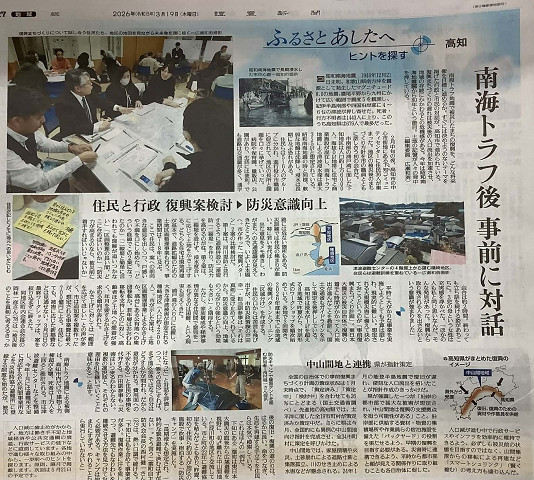 また、読売新聞大阪本社に取材をされた事前復興まちづくりのワークショップのことや二葉町を中心に下知地区が取り組んでいる広域避難のことが、19日付け読売新聞で大きな記事になりました。