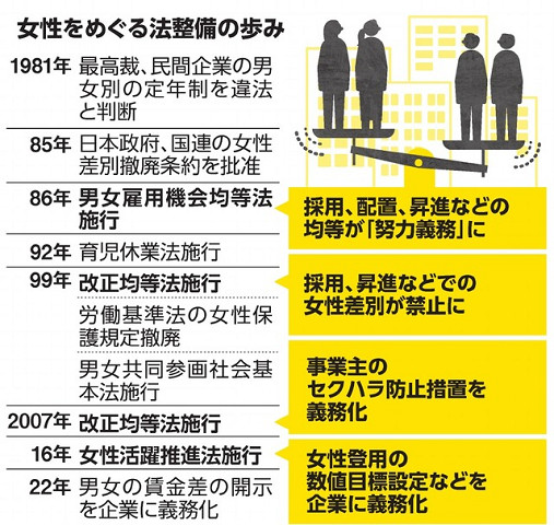 採用や配置で性別を理由とする差別を禁じる男女雇用機会均等法の施行から、4月1日で40年を迎える中、女性の社会進出は進んだが、賃金水準が低い非正規労働者は、今も約7割が女性であり、賃金格差の問題は課題として、残り続けています。