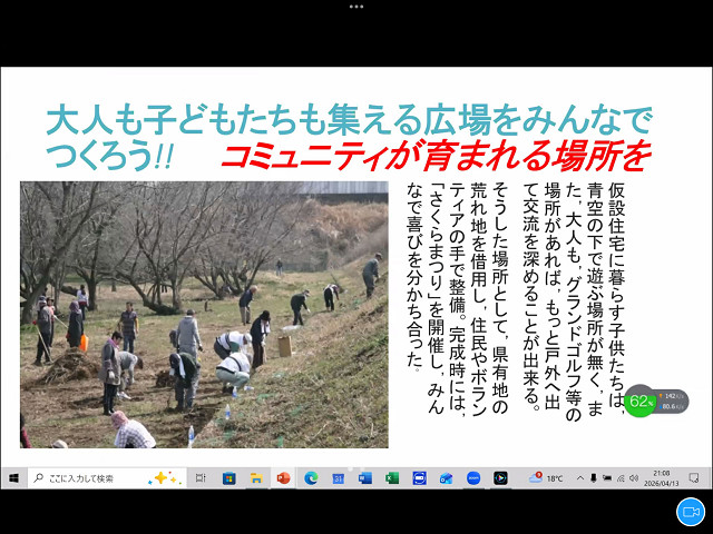 次は、3月11日の青柳公園で行う「3.11東日本大震災追悼の集い」とその後に19時~下知コミュニティセンターに場所を移してのオンラインで被災地とつなぐ「被災地の復興に学ぶ集い」です。
