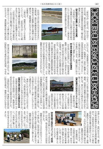 今回の紙面では、9月定例会で県民が関心を寄せられたであろう県有施設の指定管理者の在り方や、私自身の一問一答の質疑と答弁の概要ねそして10月15日から東日本大震災の被災地の復興状況などについて視察した報告などを掲載させて頂いています。