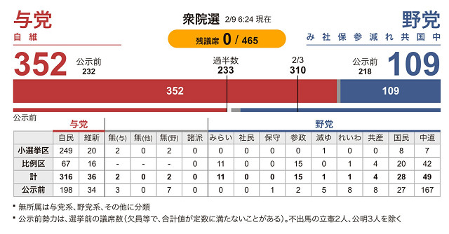 | 2月11日「自民の圧勝は国を二分する政策の実行の始まり」 |